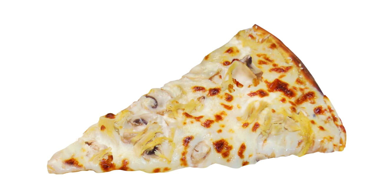 Contiene masa y salsa de la casa, pollo champiñones y queso.
