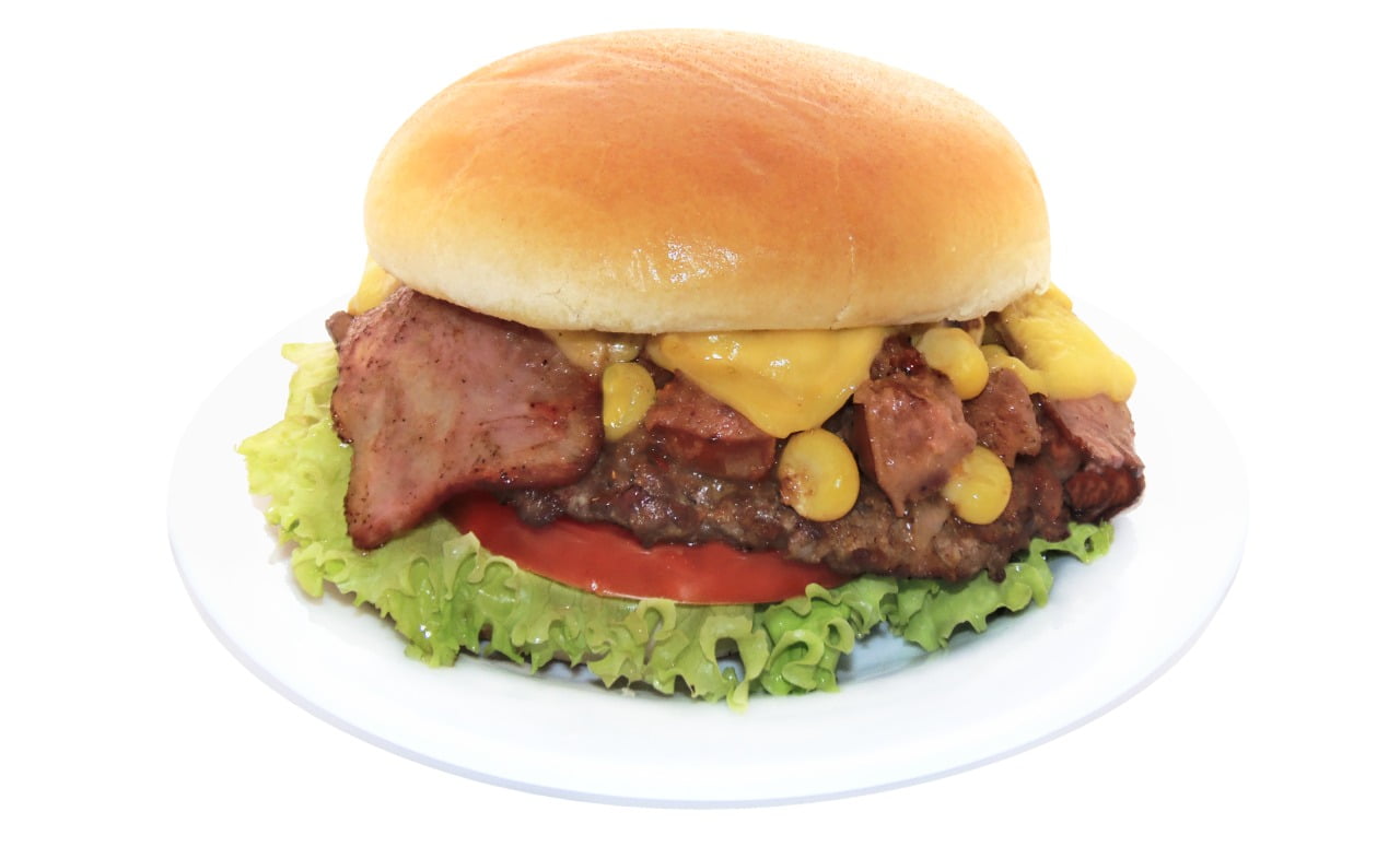 150 gr de Carne de Res, pan bimbo, tocineta, salsa ranchera con trozos de chorizo, mazorca, tomate y queso.